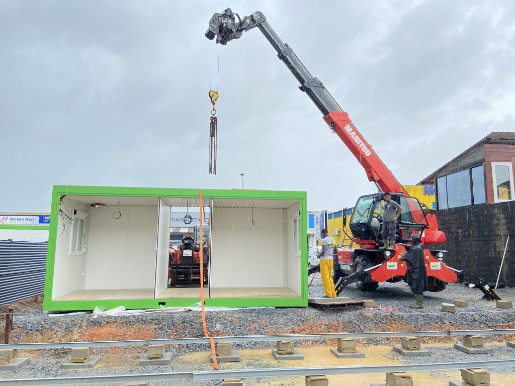 Retour sur nos installations scolaires ! Afin de respecter les nouvelles normes covid, GLS installe 3 bungalows pour l’infirmerie du collège Lise Ophion.